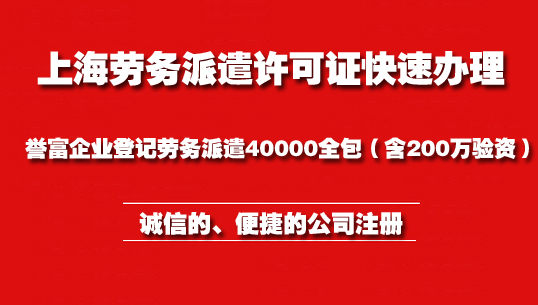 上海譽(yù)富專(zhuān)業(yè)辦理勞務(wù)派遣許可證,包括注冊(cè)地址,200萬(wàn)的注冊(cè)資本驗(yàn)資并且出具驗(yàn)資報(bào)告,直到拿到勞務(wù)派遣許可證,上面的費(fèi)用是全包價(jià)格。